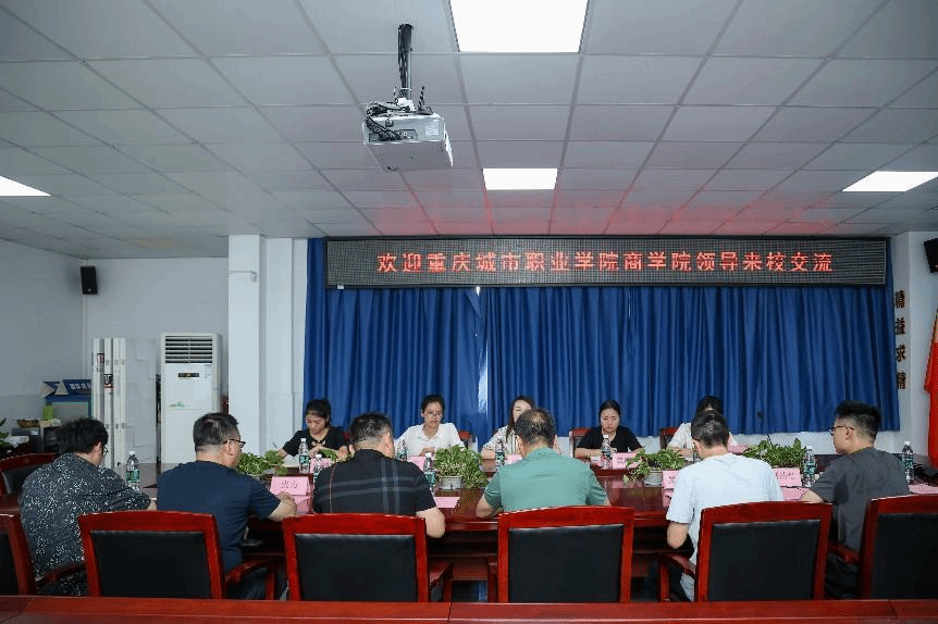 会议伊始,张红斌首先对重庆城市职业学院商学院领导和老师的到来表示热烈的欢迎,并介绍了学校和学院的基本情况。随后从师资队伍、专业建设、教学融合三个方面详细阐述了学院的工作方向和近年来的工作成果。杨翠对我院热情接待表示感谢,并对我院的发展给予了高度的肯定。同时介绍了重庆城市职业学院商学院历史沿革、主要成绩、师资情况。