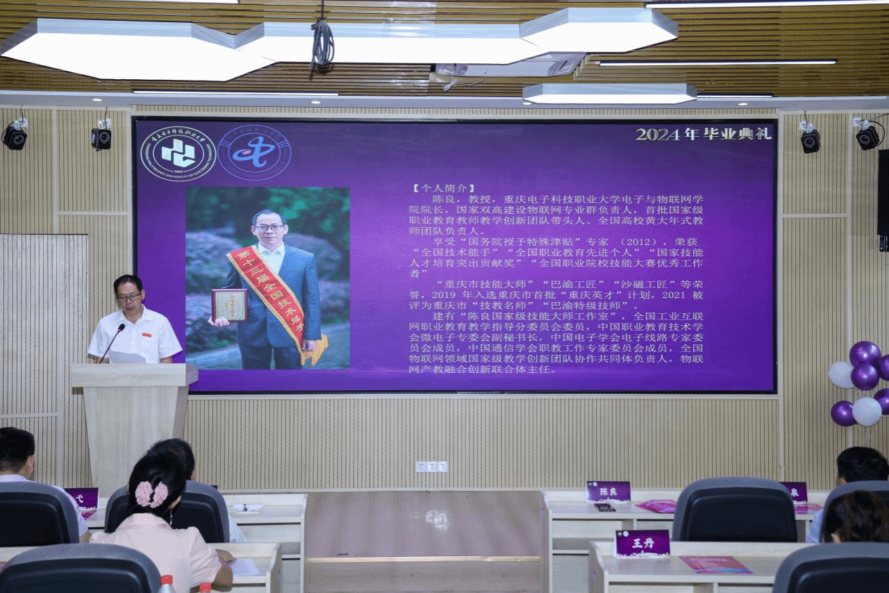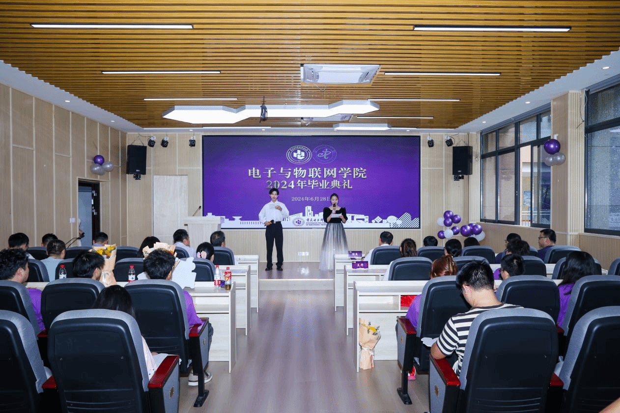 仲夏骄阳少年心,凌霄花开毕业季,6月28日下午,pg国际电子网站电子与物联网学院2024届学生毕业典礼在12-106举行。电子与物联网学院党总支书记张红斌、院长陈良、党总支副书记毛弋、副院长夏西泉、教学与课程思政科科长刘翼、工程中心主任易国键、学管科科长张力、团总支书记聂浩虹、物联网系教学副主任贺涛、各系教师代表,2024届全体毕业班的辅导员班主任老师及毕业生代表出席。