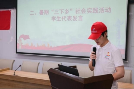 首先,李清阳同学作为志愿者代表发言。他承诺:在本次暑期“三下乡”活动中,要做到秉持谦逊之心,汲取奋进之力,躬行实践之路,奋力书写为中国式现代化挺膺担当的青春篇章。发挥数字技术的专业优势,为当地居民提供信息服务和文化支持,帮助他们拓宽视野,提升数字素养。