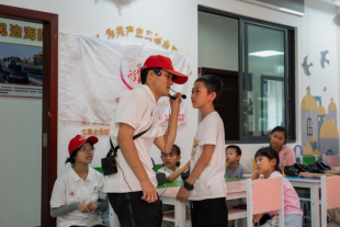 (志愿者李清阳引导训练营青少年完成任务)