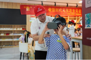 一群“数字小侠”踏上了VR世界的首次奇妙探险,每一次虚拟的触碰,都是对党史的深刻领悟,不仅感受了数字技术的发展,更在技术发展中感悟革命精神。“数字小侠”张珉扬说到:“VR设备让我仿佛穿越时空,像变魔术一样,让我好像真的去了好多好多神奇的地方”
