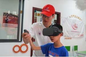 (志愿者徐小康指导训练营青少年体验VR)