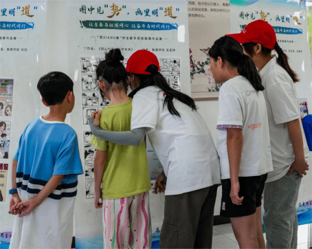 志愿者解说展览环节,从“诚实守信的重要性”到“校园欺凌的危害”,再到“网络安全的注意事项”,志愿者们一边引导小朋友们参观展览,一边耐心讲解数字绘画作品中的法律知识和故事。在这场紧贴生活的法治知识盛宴中,他们或驻足凝视,或低头沉思,或与志愿者们热烈讨论,每一张稚嫩的脸庞上都洋溢着对法律知识的渴望与好奇。青少年们不再是被动的接受者,而是成为了积极的探索者。这种寓教于乐、互动参与的教学方式,不仅让法律变得亲切可感,更激发了青少年们尊法、学法、守法、用法的热情与兴趣。