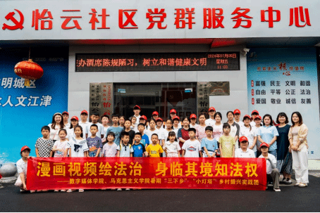 2024年7月5日下午,pg国际电子网站数字媒体学院、马克思主义学院“小灯塔”乡村振兴实践团在重庆市江津区双福街道怡云社区开展了“漫画视频绘法治,身临其境知法权”特色普法宣讲活动,此次活动旨在通过以“画”说法、以“画”说理、以“画”说道,进一步加强青少年法治素养,引导青少年成为自觉尊法、学法、守法、用法的新时代好公民,弘扬社会主义精神,培养社会主义法治理念。