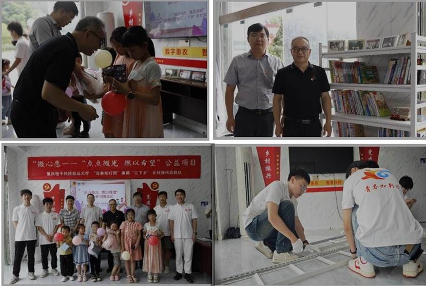 在“三下乡”开始前,实践队在槽心村驻村书记张长磊的帮助下,积极收集当地小朋友的“微心愿”,并在学校发布公告,征集公益物品。通过征集活动,为槽心小学 13 名学生捐赠电话手表、儿童照相机、书包、运动服等,同时收集200余本书籍捐赠给槽心村的孩子们,并在村委会搭设课外图书角供他们学习。重电学子走进槽心村,以点滴微光点燃希望之火,为乡村教育注入青春活力,用实际行动担起时代责任。