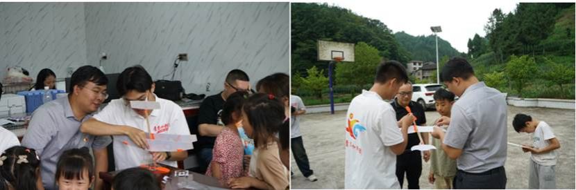 会议结束后,实践队开展“技艺进课堂、多彩润童心”系列课堂——飞机模型制作,由智汽第六党支部书记陈世江给小朋友讲解飞机模型的制作原理并带领小朋友制作模型。课堂上,实践队员分组对小朋友们进行指导。飞机模型制作好之后,实践队员和小朋友们一起在村广场进行了试飞,随着飞机成功飞起,小朋友们的脸上都洋溢着喜悦。此次课堂引导孩子们了解了空气动力学、重力等科学原理,激发了他们对科学和技术的兴趣。