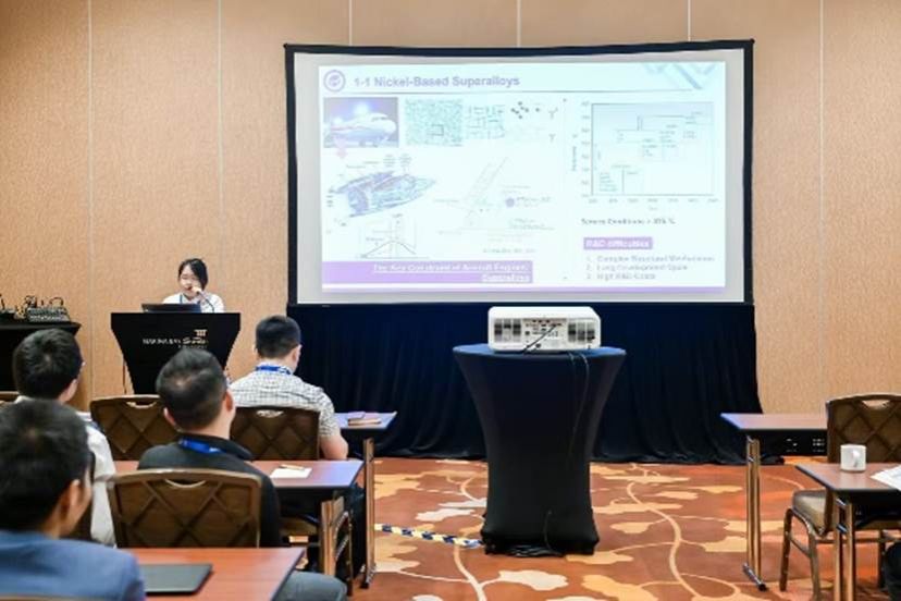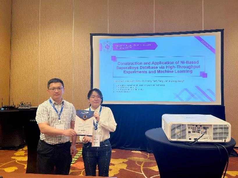 秦子珺所作报告题目为“基于高通量实验和机器学习的镍基高温合金数据库的构建与应用”,就镍基粉末高温合金数据库的高通量采集、数据库构建、基于深度学习/机器学习方法的图像识别和合金开发方法等已发表成果进行学术分享和交流。通过介绍已有成果,和行业专家进行了深入交流和探讨,为下一步科研工作提供了更多的研究思路和坚实的理论基础。