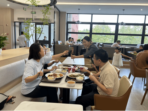 首先映入眼帘的是观兰园教工餐厅门口展架上的“礼遇教师节—祝全校教师们节日快乐!”和桐映园教工餐厅门口展架上的“教师节快乐!—九月谢师恩,桃李满天下!”,浓郁的节日气氛感染了每一位前来就餐的老师。