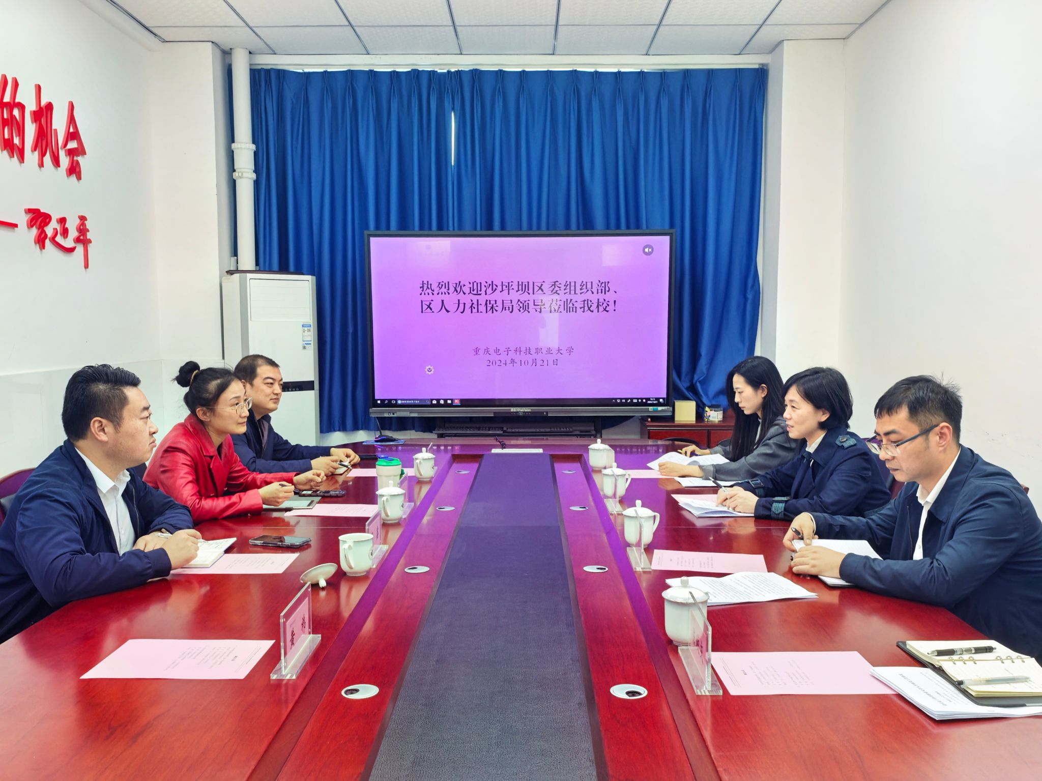 为进一步了解沙坪坝区与学校在人才队伍建设、人才服务政策落地方面的合作交流情况,10月21日,沙坪坝区委组织部副部长、区直机关工委书记杨晓敏,区人力社保局副局长朱杰一行来校调研座谈。党委组织部部长疏勤、人力资源处处长周鑫及相关同志参会。