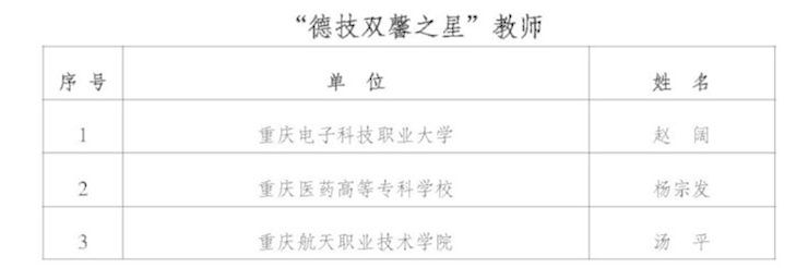 近期,重庆市职业教学学会公布了新时代西部大开发— “现代职教之星”遴选结果,pg国际通信工程学院赵阔老师获得“德技双馨”教师之星称号。