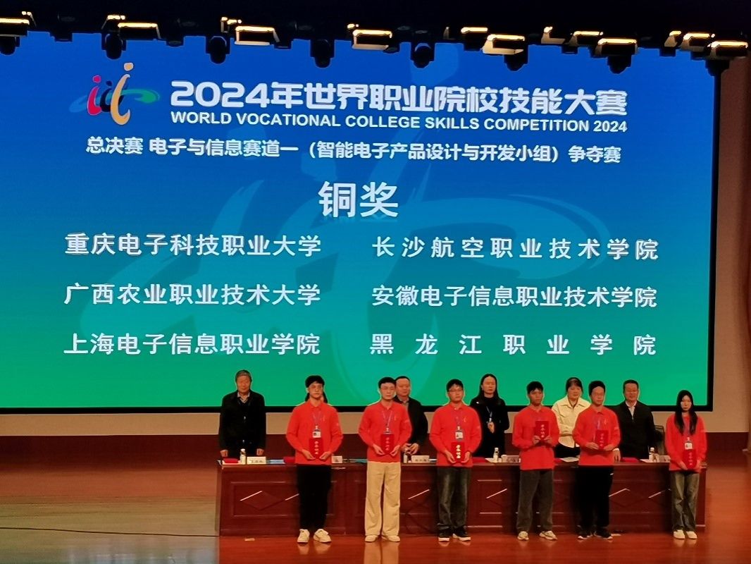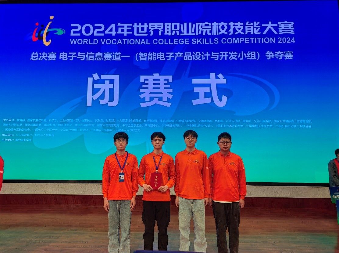 10月30日,2024年世界职业院校技能大赛总决赛争夺赛“智能电子产品设计与开发”赛项比赛在山东圆满落幕。pg国际电子与物联网学院参赛团队在众多强手中脱颖而出,荣获铜奖。
