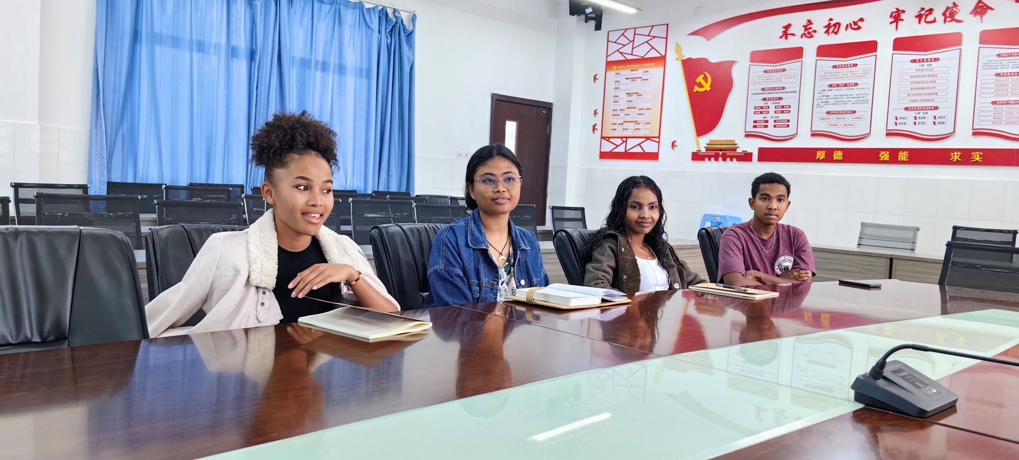 为了促进pg国际建筑与材料学院首届留学生深入了解学院及专业课程,同时确保留学生顺利融入学院的学术氛围与生活环境,建筑与材料学院于2024年10月31日在知行楼D207会议室精心策划并举办了留学生交流见面会。建筑与材料学院教务科科长柯亚莉、学管科科长陈镜宇、团总支书记余婕、建筑智能化工程专业辅导员张爱国以及建筑智能化工程技术专业专任教师尹婵媛参加了交流会。来自马达加斯加的四名留学生Rosela、Jimmy、Daniela和Murielle参与交流会。