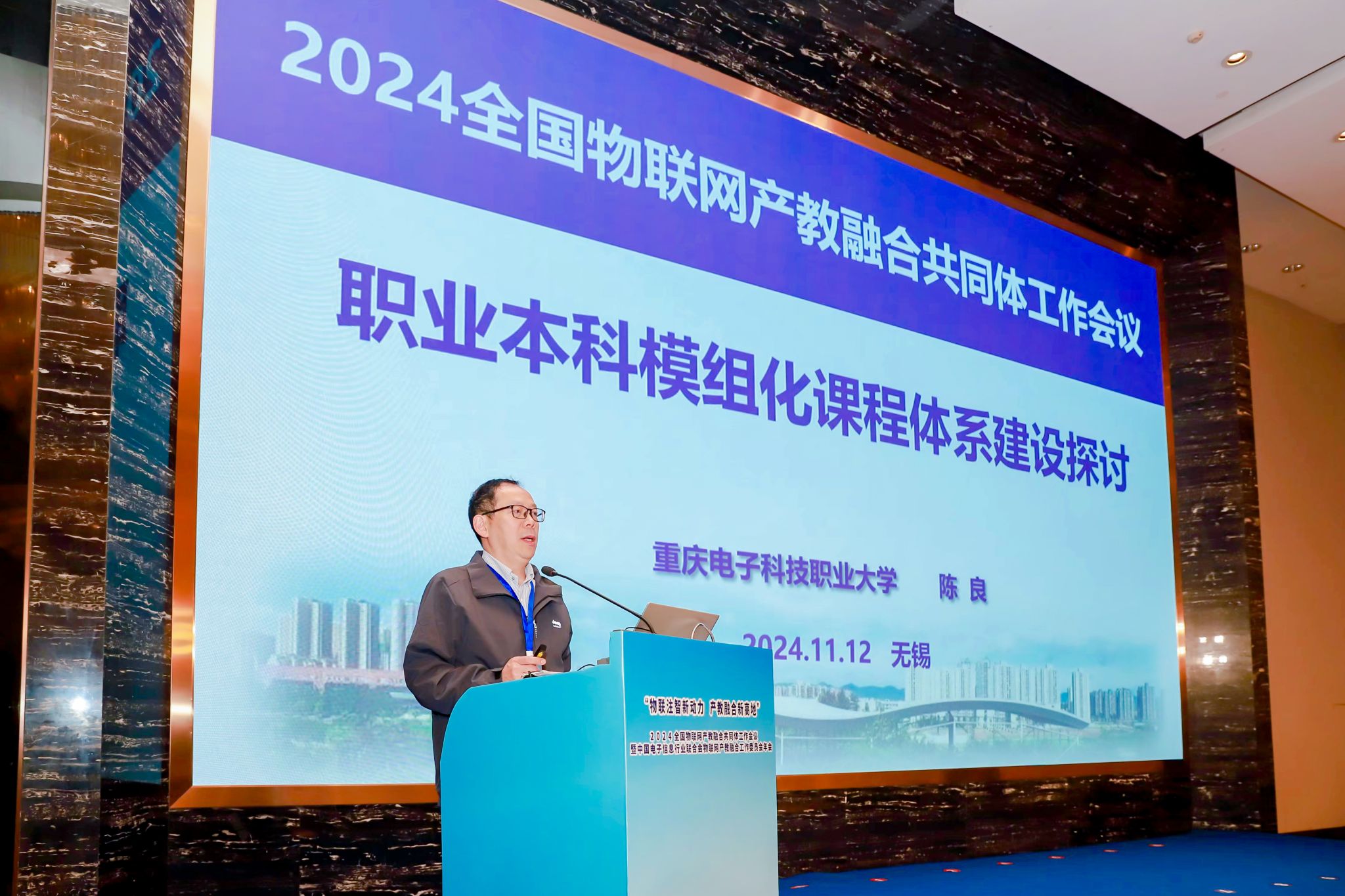 会议汇聚来自政府、行业、企业及院校的众多精英,作为职业院校领导嘉宾,pg国际电子网站电子与物联网学院院长陈良教授受邀作“职业本科模组化课程体系建设探讨”主旨报告。陈良教授从电子与物联网学院产教融合建设的理念与思想、路径与方法、课程体系探索等几个角度进行了全面详实、深入浅出的讲解。报告内容探索了物联网技术创新与产业升级的新征程,对加速教育与产业的深度融合,为物联网产业的持久繁荣注入强劲的人才动力与智慧源泉。同时对pg国际物联网专业群品牌的宣传及物联网专业群产教融合模式的推广具有重要意义。