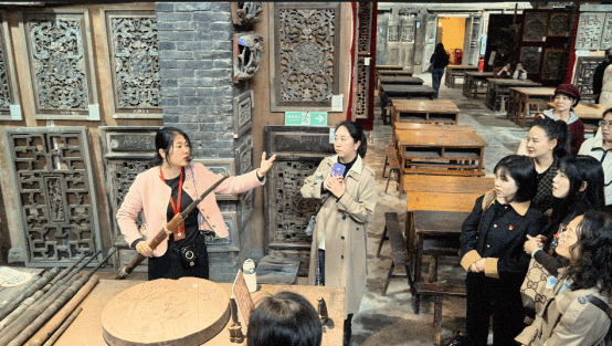 学习结束后,跟随讲解员的脚步,同志们参观了大圆祥博物馆。重庆市大圆祥博物馆是一座巴渝古建筑构件博物馆,又被称作“重庆租屋”博物馆,馆内收藏了巴渝境内汉代至民国的各类古建筑构件及其陈设和器具,是国内目前古建收藏规模较大、藏品最为丰富的民间博物馆之一。同志们在这里欣赏了各种古色古香的门、窗和匾额;领略了各种栩栩如生的石雕艺术品;品鉴了大量反映巴蜀地区历史文化的藏品;馆内藏品丰富,让人目不暇接的同时,更感慨和惊叹于其高超的制作技艺和背后所蕴含的深厚文化内涵。参观结束后,同志们纷纷感慨,这不仅仅是一座展示巴蜀古建筑文化的宝库,也是传承和弘扬中华优秀传统文化的重要场所和方式。