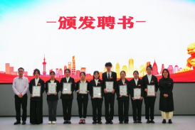 随后,数字媒体学院各级领导、老师为第六届团总支·学生会各部门负责人颁发聘书并合影留念。对于第六届团总支学生会的工作给予高度认可与赞誉,指出“正是他们的坚持与奋斗,才成就了数字媒体学院团总支·学生会精彩的现在”。