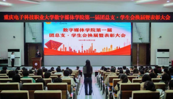 数字媒体学院第一届团总支·学生会换届暨表彰大会于2024年10月25日中午12:20在博远厅隆重举行。此次盛会荣幸邀请到了数字媒体学院党总支书记彭海深教授、院长谢永教授、党总支副书记钟佐彬同志、副院长黎娅同志、团总支书记吴艾佳同志,以及教务科科长陈兰同志、项目科科长周静维同志。此外,数字媒体学院全体辅导员、班主任老师、校团委代表,还有各二级学院团总支·学生会主席团代表也均应邀出席。大会还汇聚了数字媒体学院第一届团总支·学生会全体工作人员、社团代表。本次大会由数字媒体学院欧阳美珊同学担任主持。