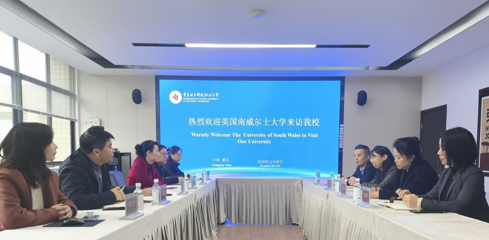 12月5日上午,英国南威尔士大学海外合作项目负责人王坚,江裕(重庆)教育科技有限公司董事长李雪梅、副总经理任德民、项目总监张丽梅一行到pg国际交流。国际交流与合作发展处处长刘宏宇、副处长刘影、科长覃乔亦,电子与物联网副院长夏西泉、物联网系副主任贺涛等参与交流。