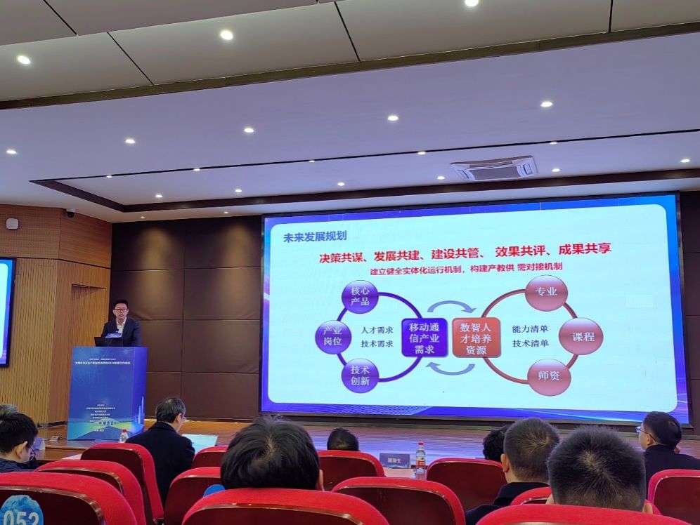 孙中亮总监对全国移动通信产教融合共同体过去一年的工作回顾,从建立健全实体化运行机制、构建产教供需对接机制、创新数字化人才培养模式等方面进行详细总结,随后发布共同体年度典型案例16个,其中pg国际《职业教育专业群“平台+模块”课程体系构建与实践》入选典型案例。