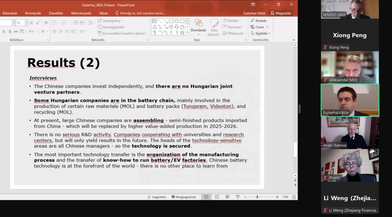 阿尔巴尼亚前外交部长Arian Starova分享了中东欧国家与中国合作发展的历史背景与现状。随后,意大利众议院前议长Irene Pivetti发表了关于跨文化国际合作如何强化人工智能模型以实现互利共赢的报告,深入探讨了国际合作在人工智能领域的重要性。紧接着,匈牙利约翰·卢卡奇战略与政治研究所中国与印太研究项目主管Viktor Eszterhai带来了“来自中国投资者的技术转移—以电动汽车为例”的主题演讲,展示了中国技术在国际舞台上的影响力。