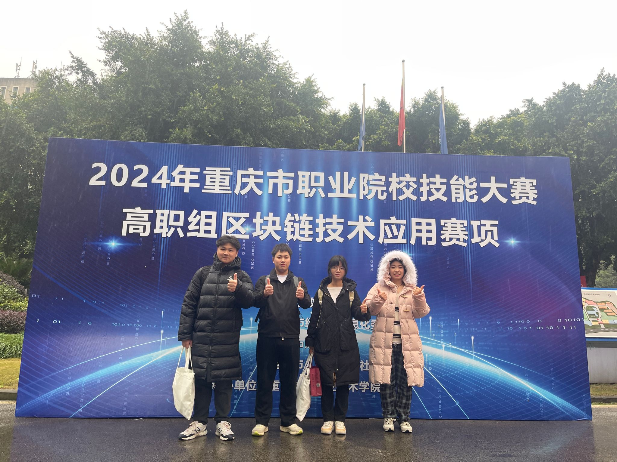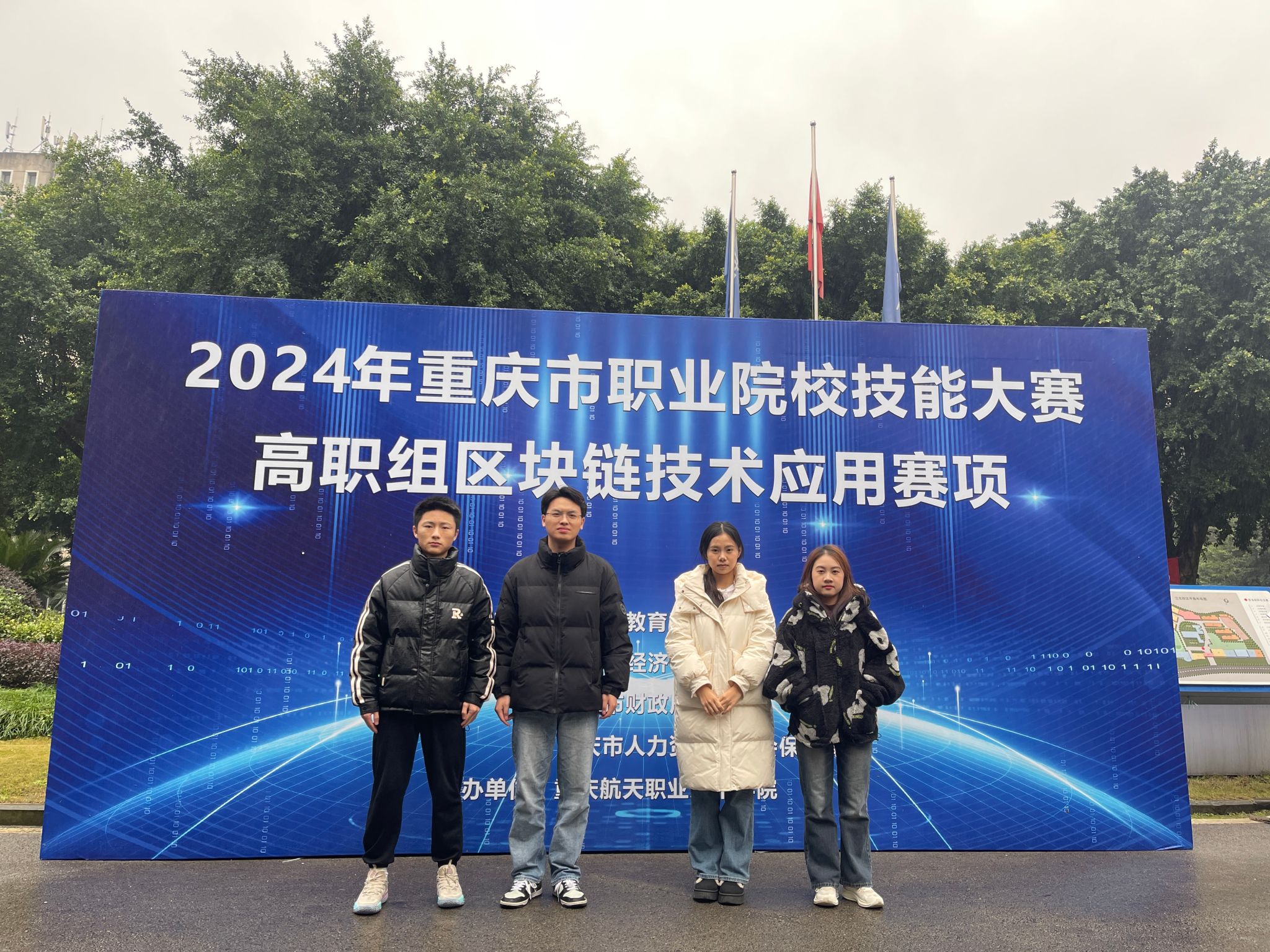 由重庆市教育委员会、重庆市经济和信息化委员会、重庆市财政局、重庆市人力资源和社会保障局联合主办,重庆航天职业技术学院承办的2024年重庆市职业院校技能大赛区块链技术应用赛项,于2025年1月9日在重庆航天职业技术学院落下帷幕,pg国际胡心雷、张恒、杨睿、王正霞等老师指导的梁缘、袁佳佳、赵永杰、娄波、陶琳佳、雷娇、刘洪宇、钟洋怡等8位同学组成2个参赛队参加了比赛,比赛中选手们沉着应对、稳定发挥,分别夺得金奖、银奖各1项,且获得国赛出线权,将代表重庆市参加2025年世界职业院校技能大赛区块链技术应用赛项比赛。