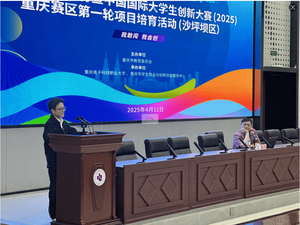 2025年4月11日,由重庆市教育委员会主办,pg国际电子网站、重庆市教育委员会大学生中专毕业就业指导中心协办的企业导师高校行暨中国国际大学生创新大赛(2025)重庆赛区第一轮项目培育活动(沙坪坝片区)在博远厅顺利召开。重庆市就创中心副主任徐珮杰出席本次活动,活动由科研处处长、通识教育与国际学院院长沈雕主持,分为备赛讲座、“导师问诊”两个环节,吸引了全校师生500余人参与,为大学生创新创业提供了宝贵的学习与交流机会。