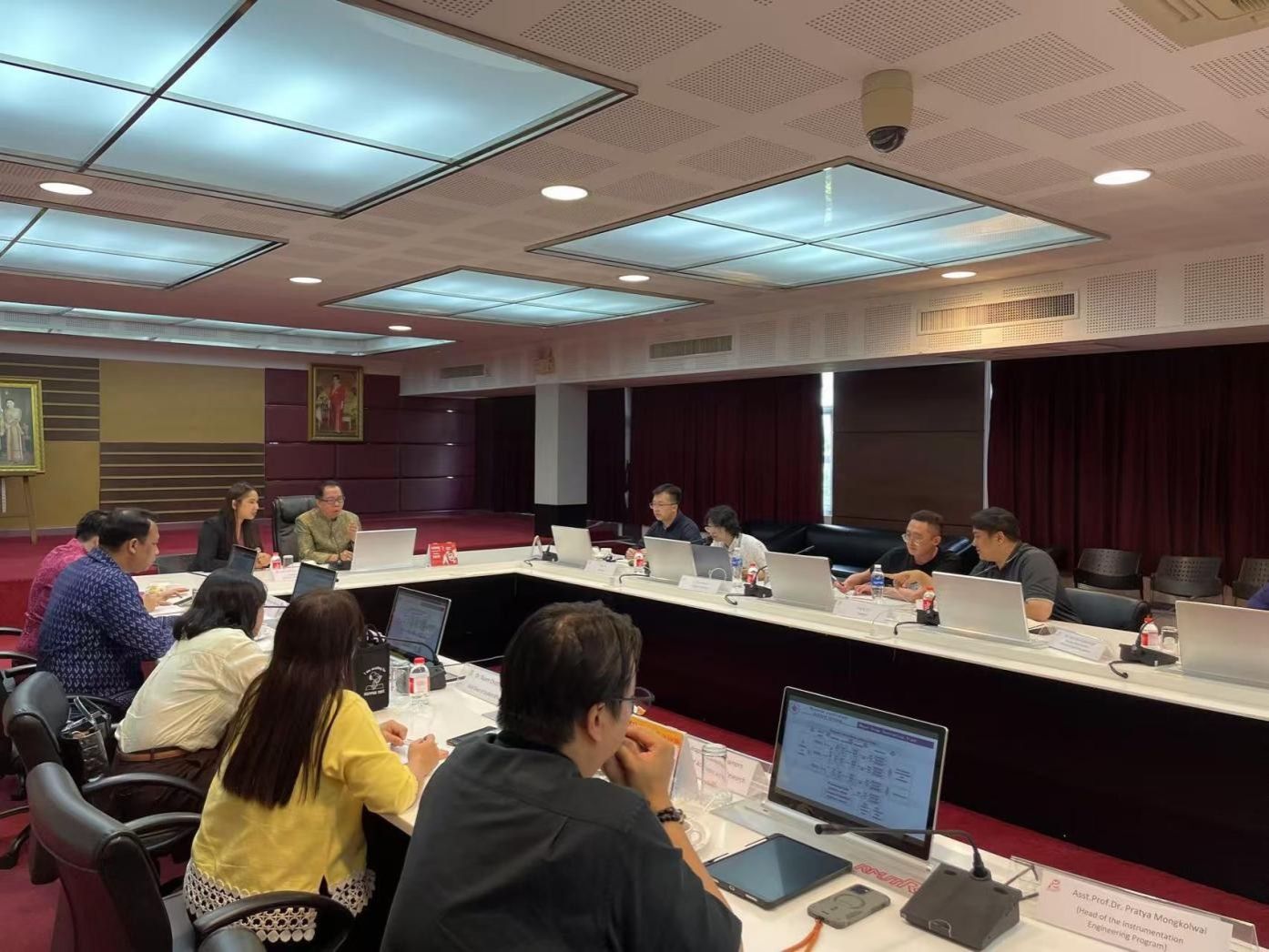 4月上旬,pg国际光电信息工程技术专业主任郑雪娜及骨干教师汪鑫应泰国兰塔纳功欣皇家理工学院工程学院邀请,赴泰出席RMUTR-NOVASTAR-CQUET校企校三方合作研讨会。泰国兰塔纳功欣皇家理工学院校长Udomvit Chaisakulkiet、副校长Akera Ratchavieng、工程学院院长Jetsdaporn Satansup、工程学院副院长Jiraporn Kieatwut-Amorn、工程学院副院长Nu-orn Chothong(会议主持)、工商管理学院张正诗老师(中文翻译)及工程学院相关专业负责人出席会议。