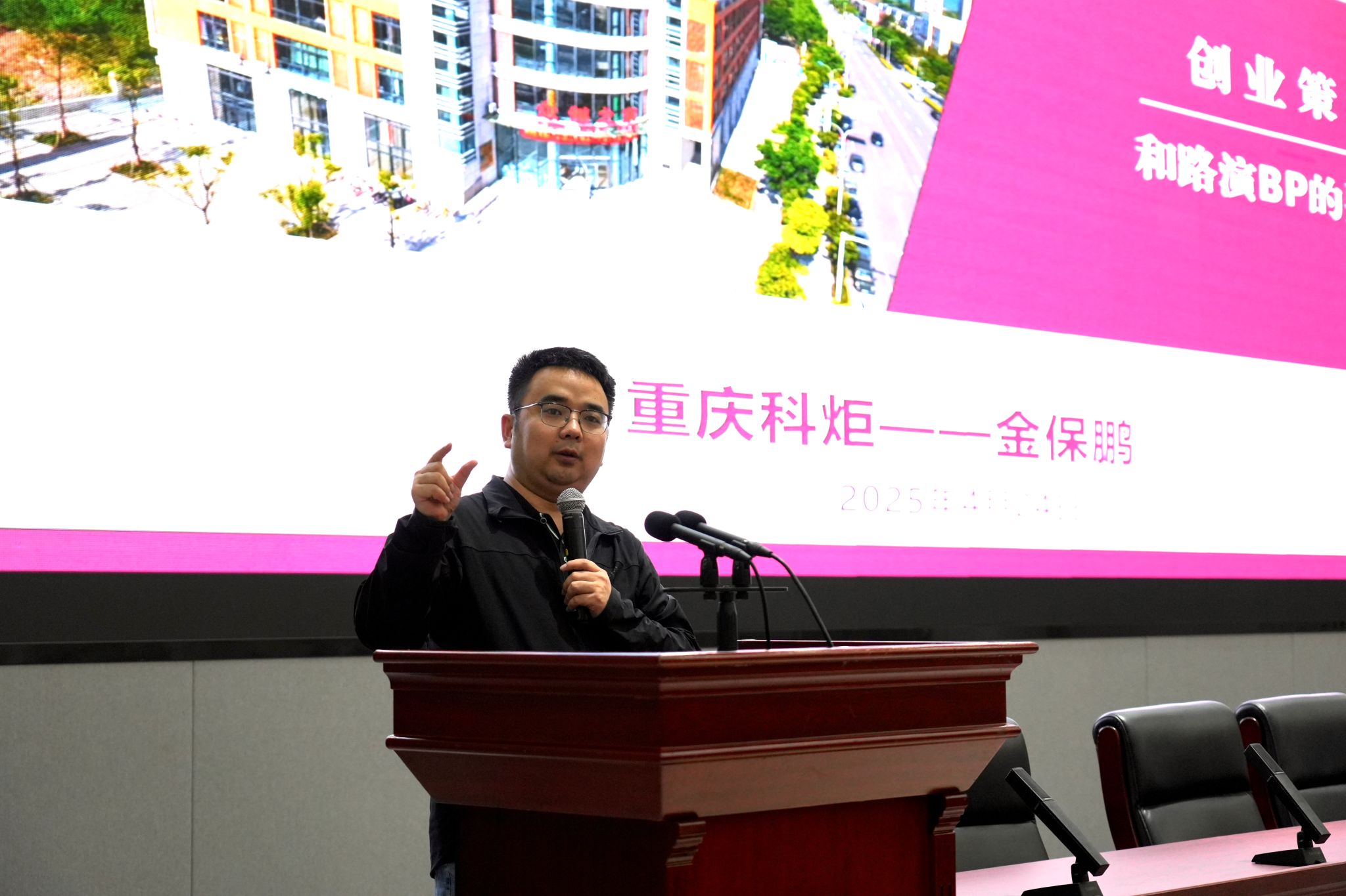 作为重庆科炬企业孵化器有限公司执行董事兼总经理,金保鹏老师以《创业策划书和路演BP的要素设计》为题,从“选项目与组建团队”“打磨优化项目”“实践探索”三大维度展开分享。他强调,创业项目需聚焦“痛点解决”与“创新性”,他还分享了融资计划制定、竞品分析等实操技巧,帮助同学们构建系统化的创业思维。