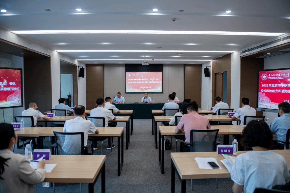 2025年5月24日下午,2025年重庆市中职学校党委(党总支)书记、校长政治能力和履职能力提升专题研修班开班式在两江校区智德楼206室举行,来自我市20所中职学校的党委(党总支)书记、校长等20人参加培训。