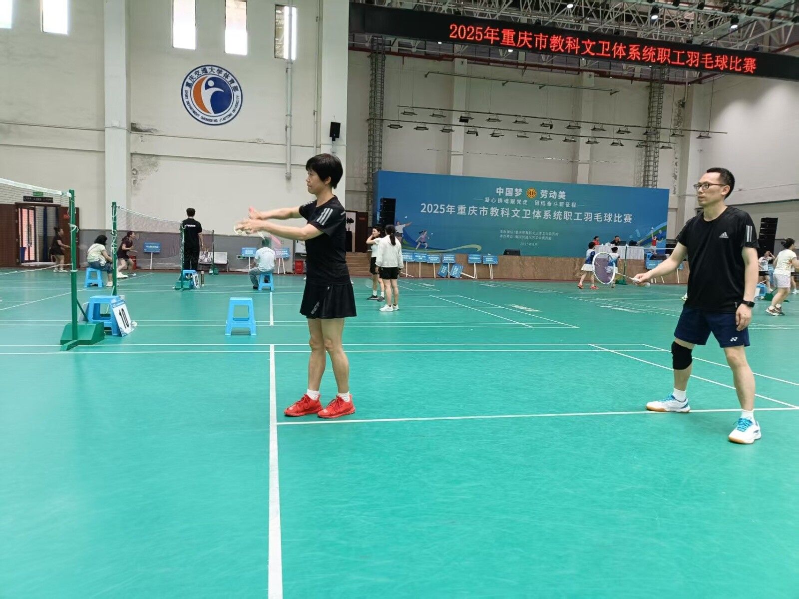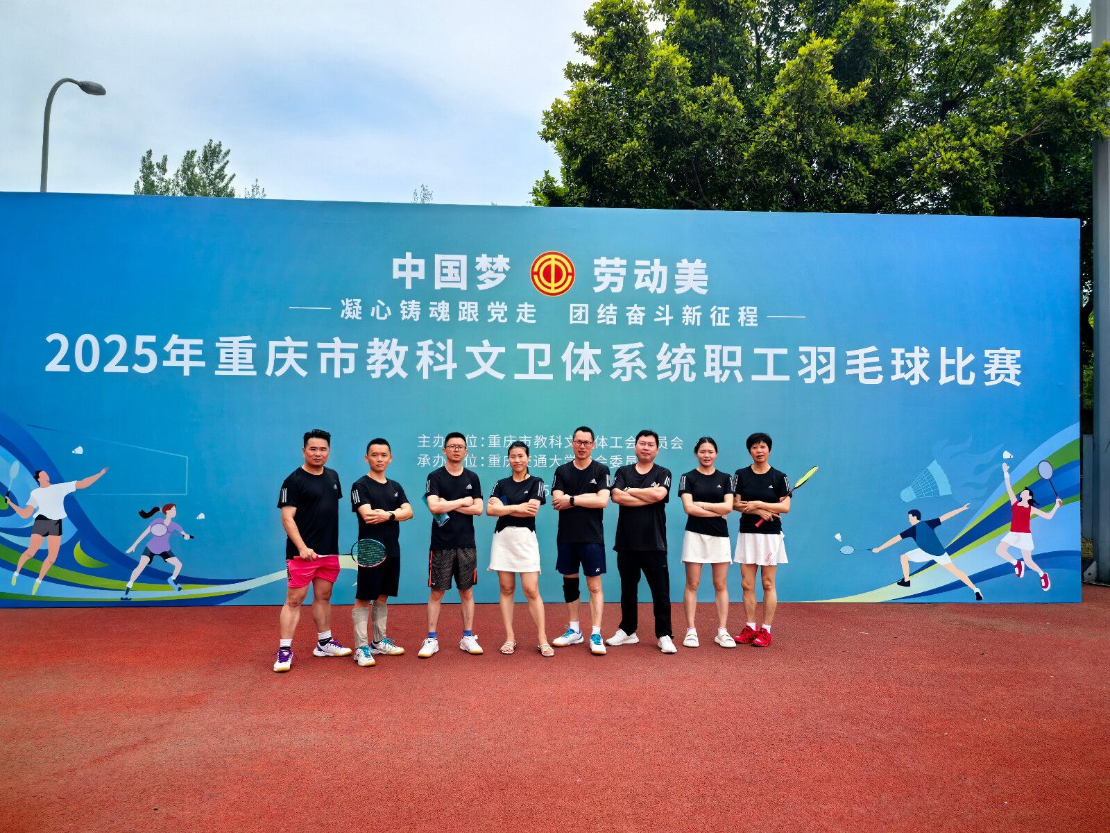 6月5日至6月6日,pg国际组织教职工羽毛球代表队参加了重庆市总工会举办的“凝心铸魂跟党走,团结奋斗新征程”教科文卫体系统职工羽毛球比赛。通过教工羽毛球协会前期组织的训练、选拔,共有7名分别来自通信工程学院、电子与物联网学院、通识教育与国际学院、财经管理学院、体育与国防教学部、培训与继续教育学院的教职工,代表学校分别参加了团体男双、女双和混双比赛。