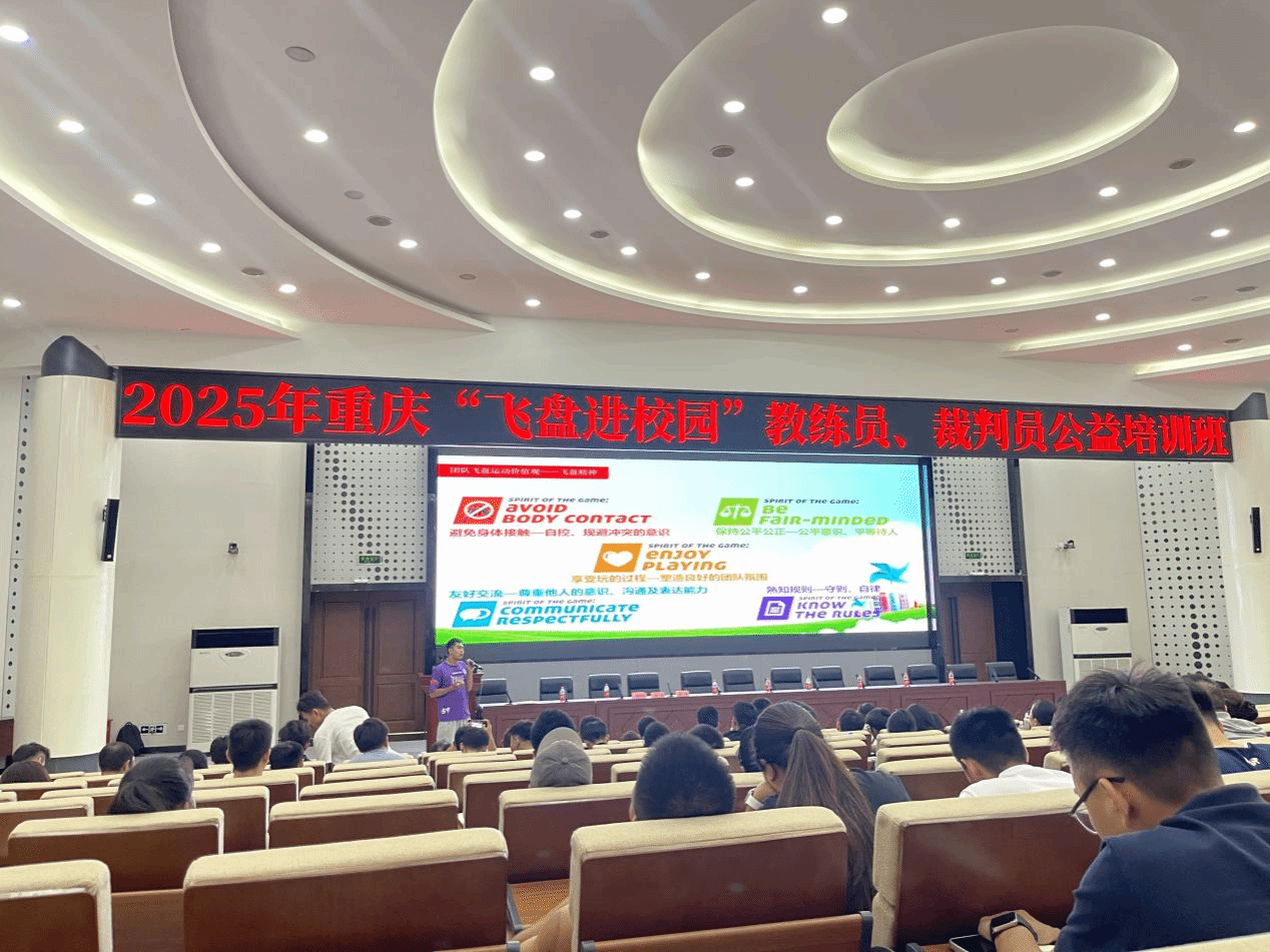 2025年7月5日至6日,由重庆市学生体育协会主办,重庆市学生体育协会飞盘分会执行,pg国际电子网站承办的“飞盘进校园”教练员、裁判员公益培训班在pg国际电子网站顺利举行。