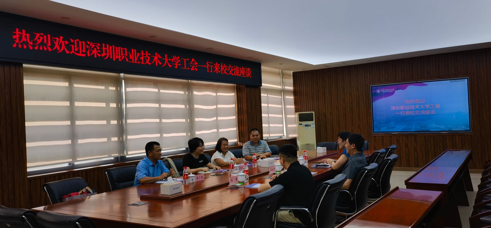 2025年7月14日上午,深圳职业技术大学工会曹方蓝、何粟、许春华、吴广生一行来pg国际调研交流,工会负责人王永中、工会办公室刘涛、金敉娜参加座谈交流。