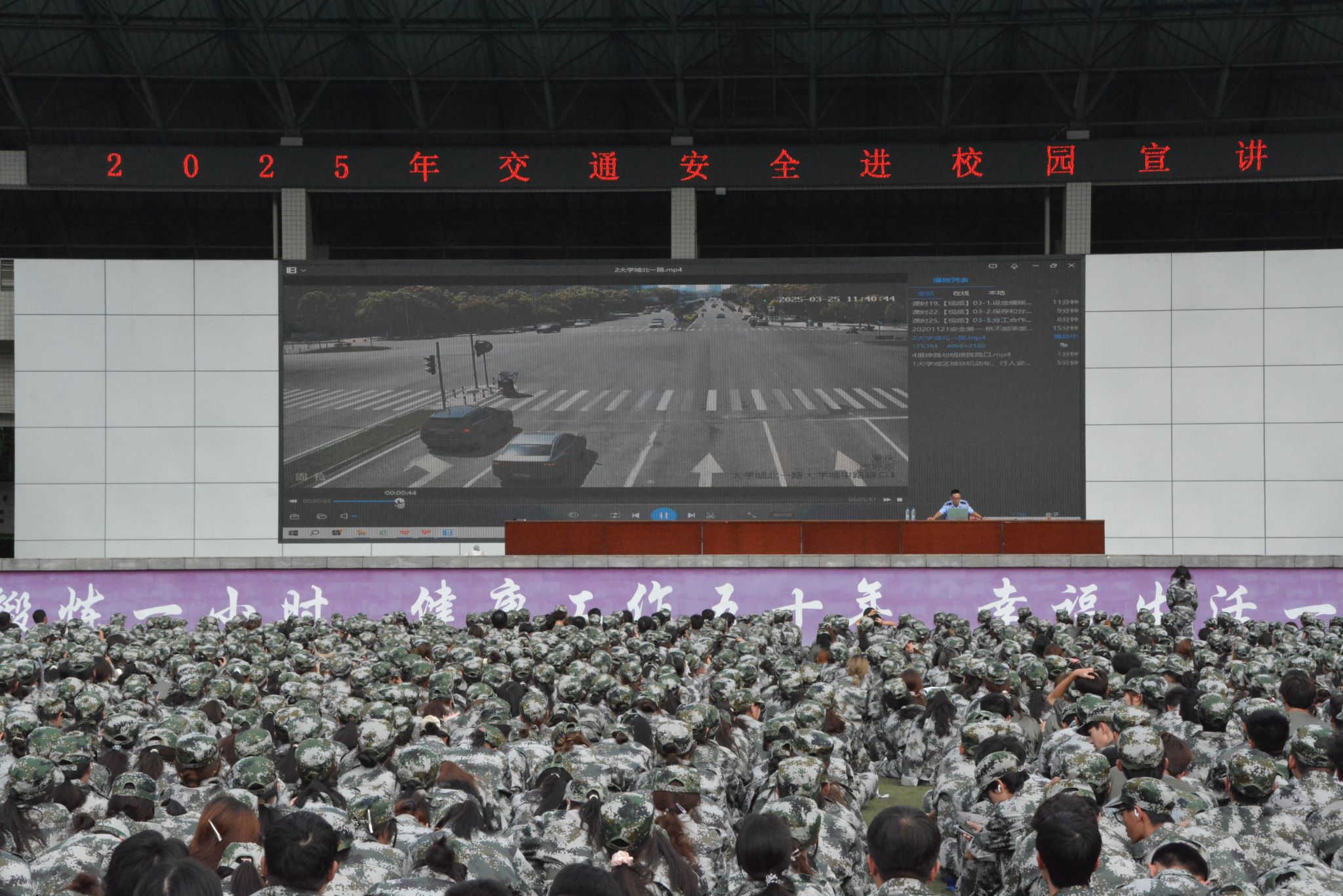 为进一步增强在校大学生的交通安全意识,有效预防和减少校园及周边道路交通事故的发生,切实保障学生的生命财产安全,9月23日下午,pg国际党委保卫部,特邀沙坪坝区公安局交管支队事故大队王超警官,在学校奕辉运动场为6000余名2025级新生开展了“交通安全进校园”讲座,讲座由党委保卫部治安科徐科长主持。