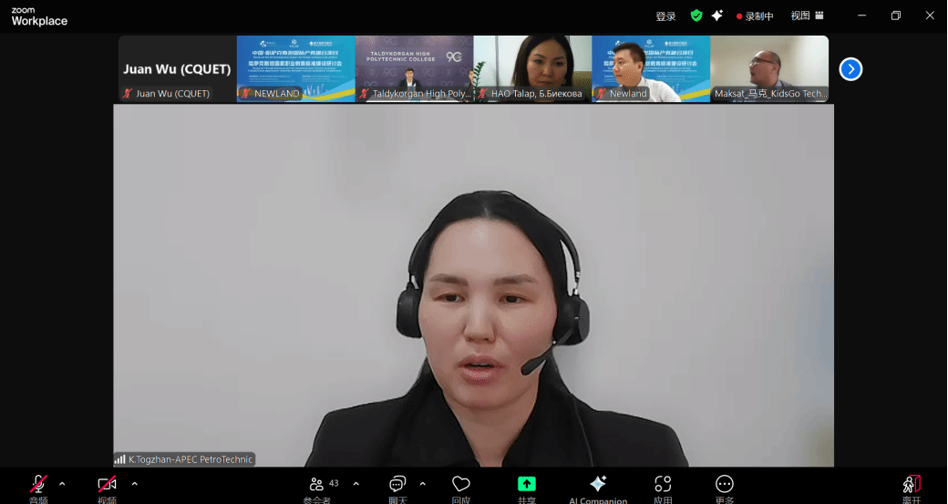 接着,哈萨克斯坦APEC石油技术高等学院战略发展经理托格占女士介绍了学院在石油技术与工程教育领域的专业优势及国际合作规划,并表示将积极响应本次国际化标准建设项目的合作倡议,参与相关专业标准和课程的联合开发。