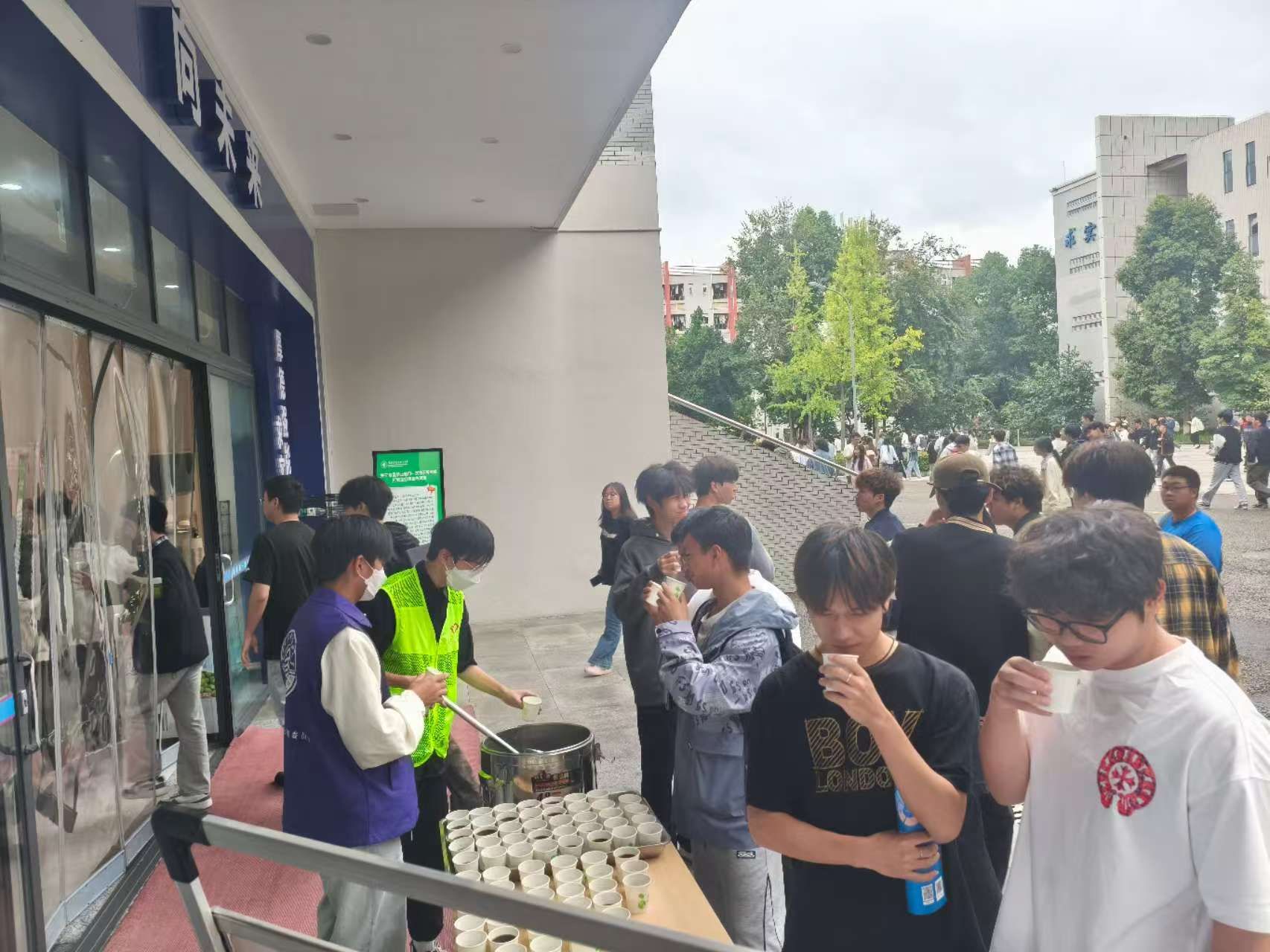 10月14日至16日,在校医指导下,观兰园二食堂、桐映园一食堂为师生规范熬制中药汤剂,每日上午11:30起,校医与志愿者分别在南北校区食堂入口处设立发放点,将汤剂分装成杯,有序发放至师生手中。