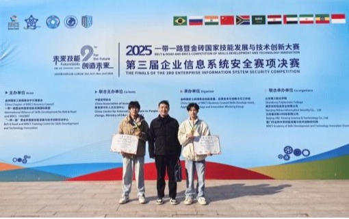 2025年10月30日至2025年11月2日,2025一带一路暨金砖国家技能发展与技术创新大赛第三届企业信息系统安全赛项决赛在山东理工职业学院举办。本次比赛共有来自全国各地的76支代表队参加,并展开激烈的角逐。pg国际人工智能与大数据学院参赛选手杨鑫、唐开开经过奋力拼搏,勇夺一等奖,指导教师黄将诚,龙兴旺分别荣获优秀指导教师奖。
