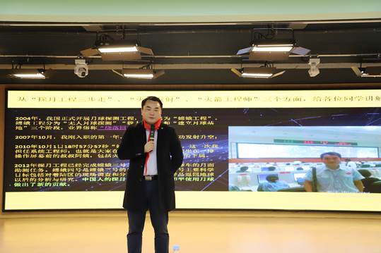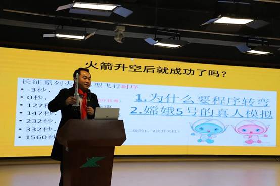 毛弋从“嫦娥五号”探测器的探月成功谈起,利用模型、图片和视频结合的方式,分别从“探月工程三步走”、“火箭发射”和“火箭工程师”三个方面生动形象地为同学们讲解关于火箭的科技知识。随后通过分享自己在航天科技上的研究探索故事,让同学们深刻理解航天人精神,并鼓励同学们要怀揣梦想,脚踏实地,努力学习,增长才智,将来为国家航天事业献出自己的力量。