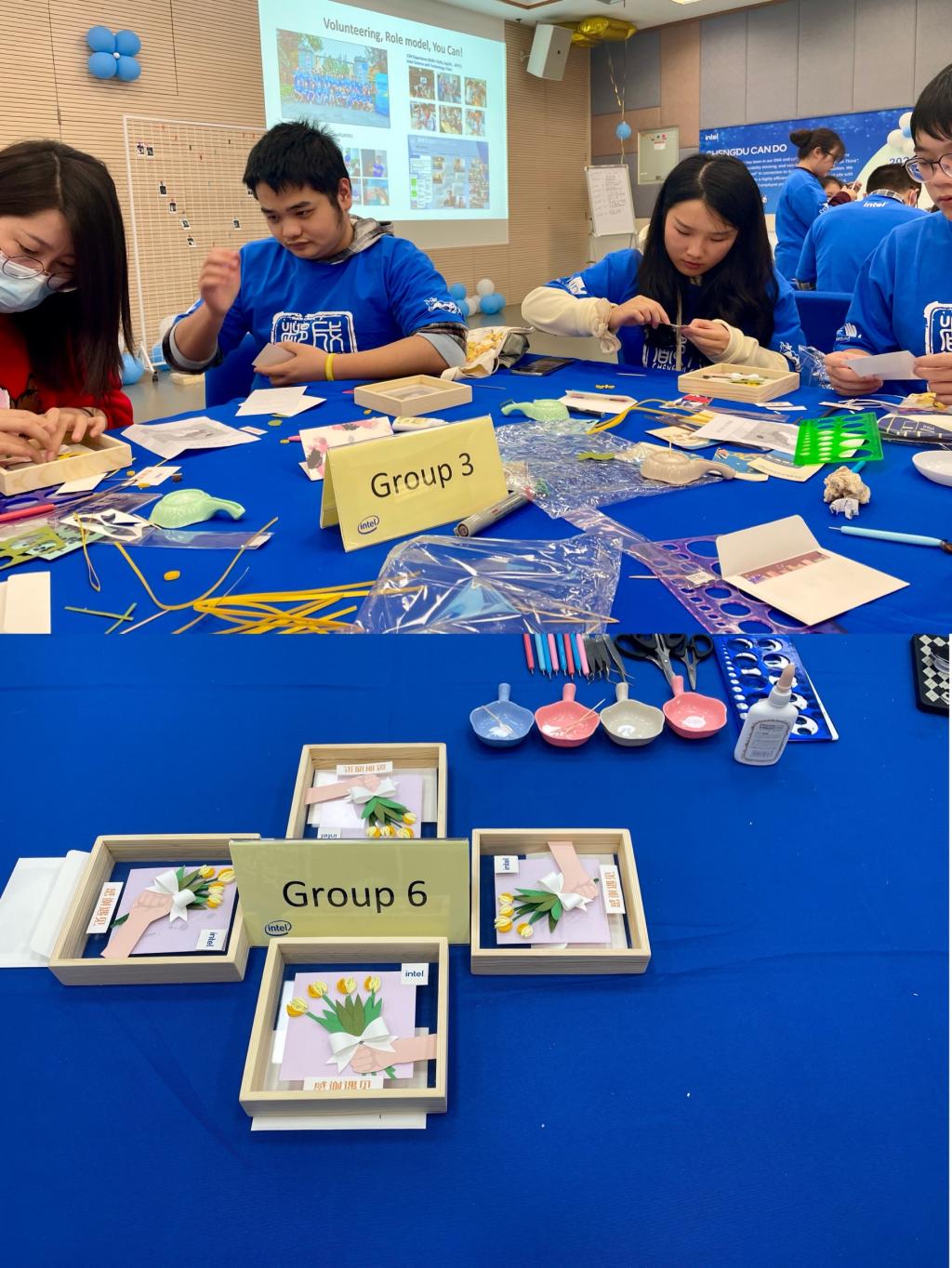 英特尔公司一直在努力倡导并推崇员工志愿服务项目的开展。不论是在员工食堂、工厂园区,还是在办公室、走廊,随处可见志愿者的身影。丰富多样的志愿服务活动已成为英特尔员工的生活常态——平均参与率70%,平均年度志愿者服务时间大于2万5千小时,充分体现了英特尔公司的企业社会责任感。在本次体验中,师生们一起化身为志愿者参与CSR(企业社会责任)体验,为自闭症儿童中心的老师们制作感恩花框、送去温暖和谢意。