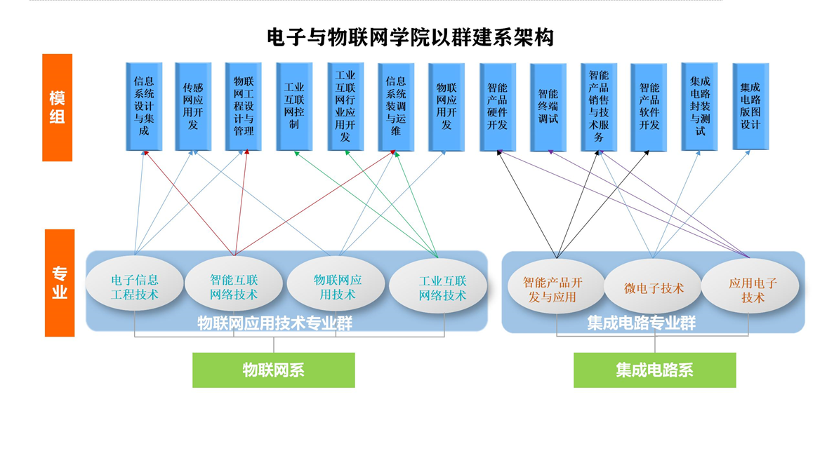 随着“以群建系”的落地,能更好的落实《关于推动现代职业教育高质量发展的意见》(中共中央办公厅 国务院办公厅2021.10)要求,专业体系紧密对接产业链、创新链,创新校企合作办学机制,进一步深化教育教学改革,实现专业群建设的高水平,造就“物联网领域、集成电路领域职业教育领航者”。