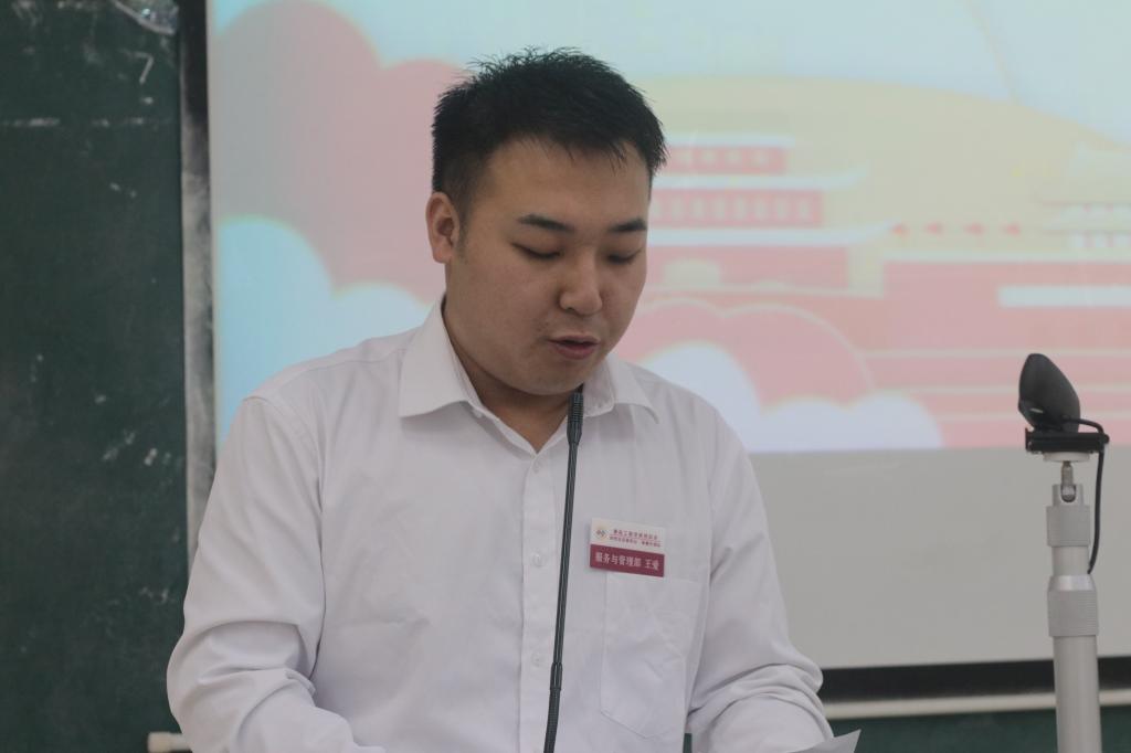 在同学们饱含深情的演讲过程中,能看到队员们对党员流动服务站这一支队伍的热爱。服务与管理部成员王爱同学代表19级全体麦穗先锋队成员作述职报告和岗位调换陈述,感谢他们的无私奉献,为学院学生党建工作付出的力量。服务站的不断发展以及取得的丰硕成果离不开每一位先锋队队员的默默奉献,随后,第三届党员流动服务站站长团成员徐小宝同学给大家带来了一份特殊的述职报告。