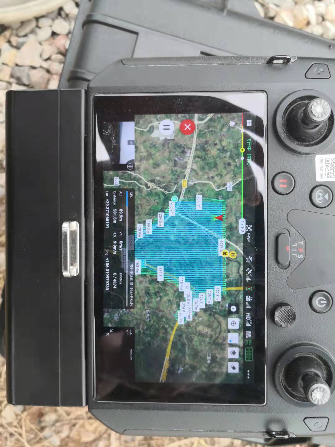 实践团队首先对新校区选址地块进行了实地踏勘,然后结合测区地形地貌和道路交通特征,在测区内部及外围布设23个像控点。在重庆飚风航拍影像有限公司的设备支持下,利用大疆M300 RTK无人机挂载五镜头倾斜摄影相机,以100米的航高对测区进行航拍实景扫描,利用高精度RTK测量仪对像控点的经纬度、海拔等数据进行测量。