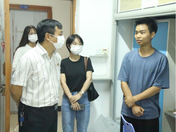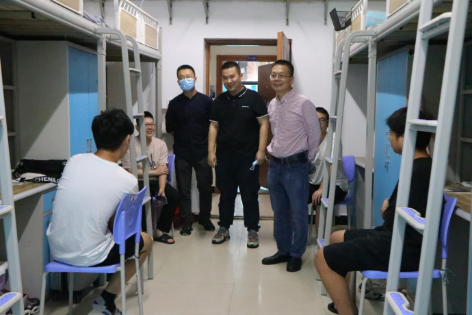 为进一步掌握新生入学情况,关心新生住宿环境,同时深入宣传落实防诈反诈工作,9月12日下午,我院党总支书记吴焱岷、党总支副书记刘宏宇、学管科科长白锐、团总支负责人王菡、党支部书记邓剑勋、网络空间安全系主任鲁先志、软件工程系主任黎娅及全体2021级新生辅导员共同走访了新生宿舍,看望新同学。