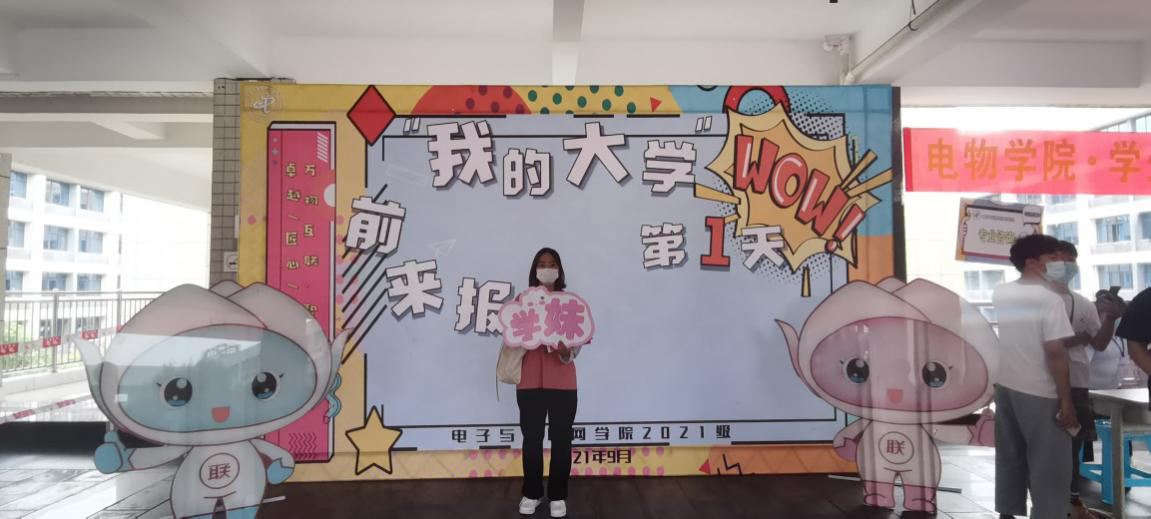 许多新生在学院设立的“开学的第一天”展板处合影留念,供新生合影留念,同学们在现场积极打卡,每张照片无不展现出他们对以后的校园生活的无比期待。