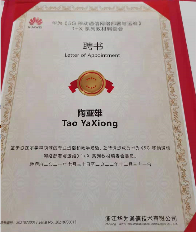 图2《5G移动通信网络部署与运维》1+X系列教材编委会委员聘书