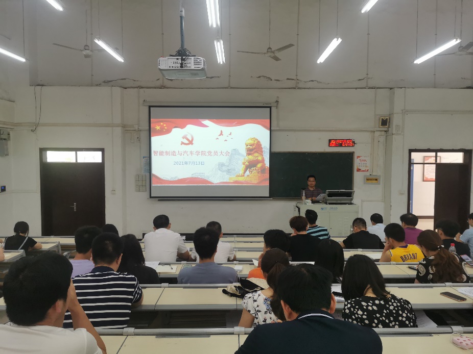 2021年7月13日下午,智能制造与汽车学院党总支在9212教室组织召开全体党员大会,会议由学院副书记丁伟主持。