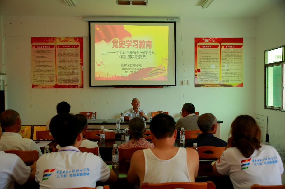 为庆祝中国共产党成立100周年,团结引导广大党员听党话、跟党走、感党恩。7月8日上午9:00,秀山县梅江镇石坎村村委会与重庆电子工程职业学院智能制造与汽车学院“三下乡”暑期实践团队——党史学习教育实践团一道开展了党史学习教育。