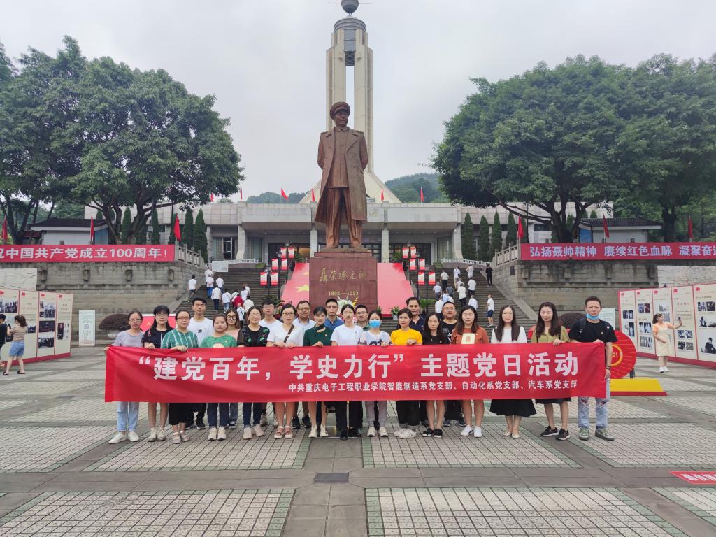 为庆祝建党一百周年,缅怀先烈,增强党员理想信念,提升组织凝聚力,7月8日上午智能制造与汽车学院三个党支部赴重庆市江津区聂荣臻元帅陈列馆开展了“建党百年,学史力行”主题党日活动。