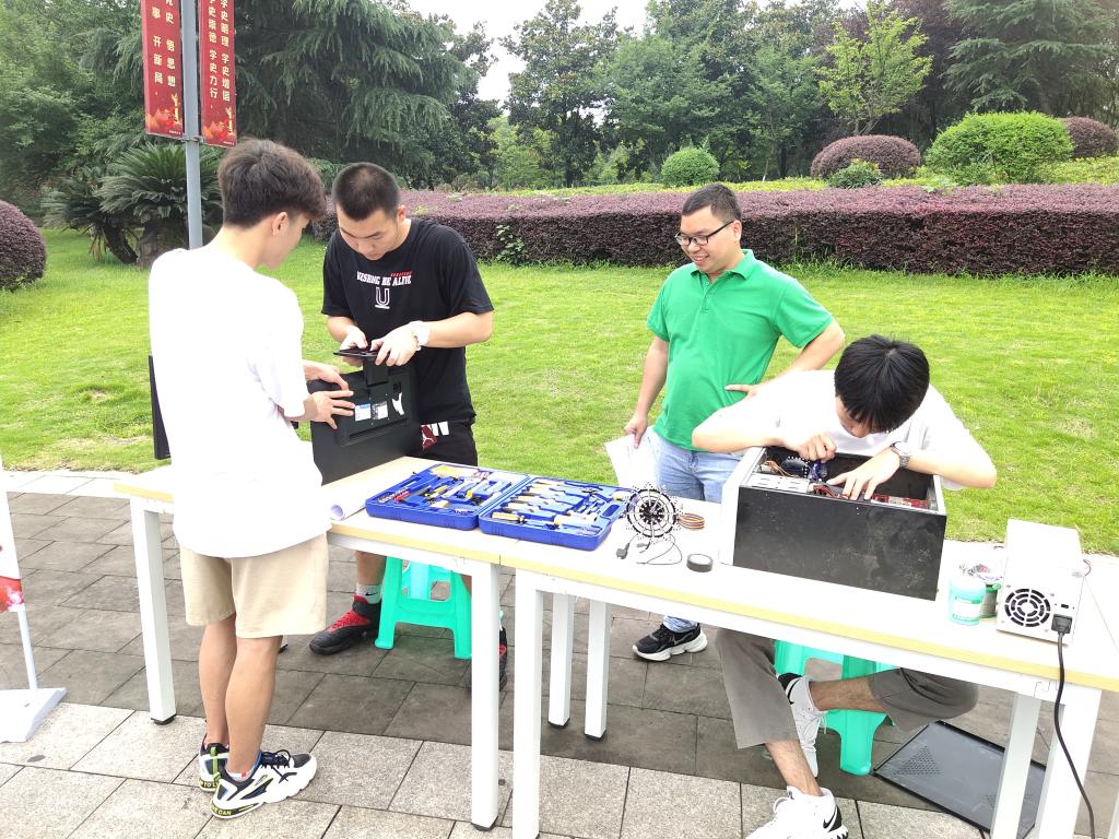 6月24日,电子与物联网学院信息服务系党支部师生党员在学子广场开展智能电子产品维修志愿服务活动。