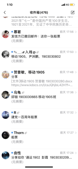 本次活动通过《新华社》发送且具有纪念意义,同时也仅限亿张的特制船票,从中让学生学习到从建党之初的一艘小小红帆船承载着人民的寄托与民族的希望,到今天的泱泱大国一飞冲天的载人航天飞船装满了民族崛起的标志和民族的凝聚力。本次活动在全院范围内开展,共收集了86张红船船票,参与同学有各党支部的入党积极分子、发展对象、预备党员,同时20级、19级各班班长团支书等同学也都积极参与本次活动。体现了通信工程学院全体学生在党的精神具体指导下,本着积极认真的态度落实了此次党史系列学习活动之红船之旅的党史学习教育。学习完毕,每位分享船票的同学都写下深深的感悟,表达出自身要做到自觉传承红色基因,坚定理想信念争做中国新时代新青年,做真正挑起社会大梁的青年才俊。