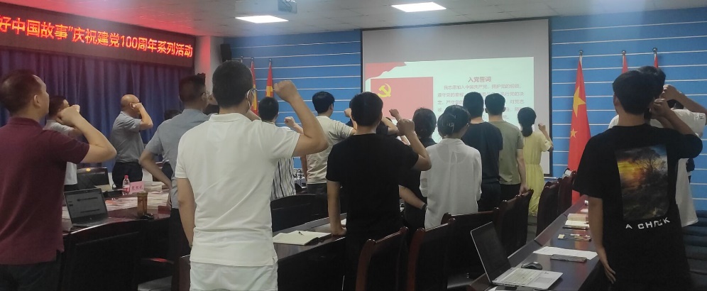 活动第三项议程,在幸昆仑同志带领下,全体人员面对党旗,庄严宣誓。通过重温入党誓词,表达了党员同志忠于党、守初心、践使命的坚定决心。