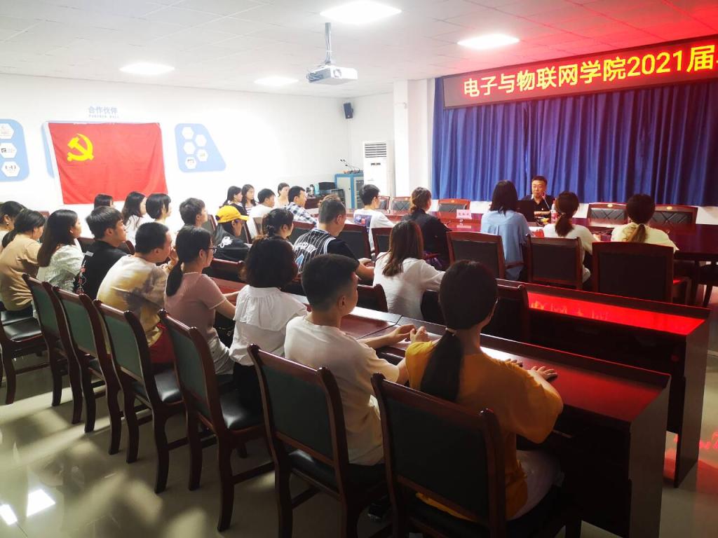 图为:电子与物联网学院党总支2021届毕业生党员专题党课现场情况